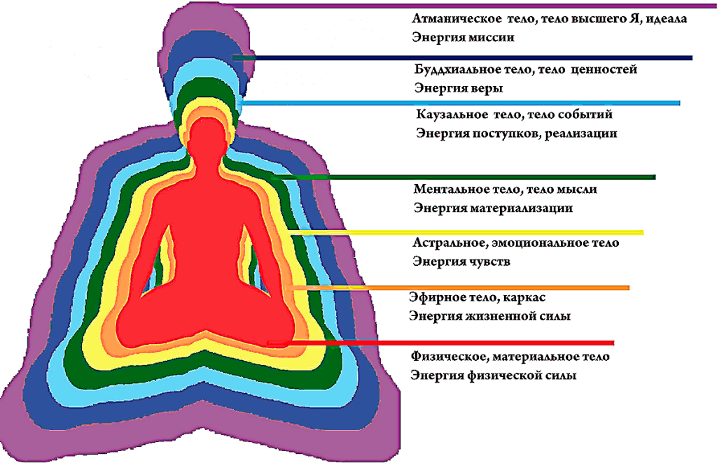 Когда мы заводим разговор о тонких телах, сразу вспоминаются хорошо знакомые образы, пришедшие к нам из Индии (см. рис. 3‑2).