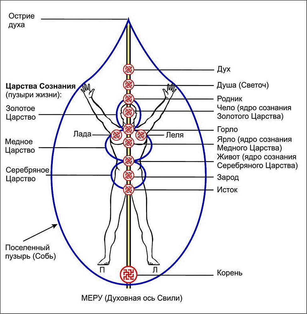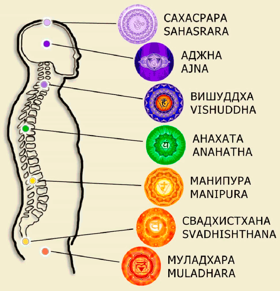 Сказавши о тонких телах, сразу нужно вспомнить такие тонкоматериальные объекты как чакры (см. рис. 3‑3). Началось всё в Индии и Китае, правда китайцы предложили для использования только три объекта: нижний, средний и верхний Даньтяны, в то время как индусы – семь чакр: Сахасрару, Аджну, Вишудху, Анахату, Манипуру, Свадхистхану, Муладхару и ещё три потока: Сушумну, Иду и Пингалу. Но и в том, и в другом случае эти объекты анатомически (в том числе с использованием измерительных приборов) никак не обнаруживаются, точно так же как тонкие тела: астральное, ментальное, каузальное, буддхиальное и атманическое.